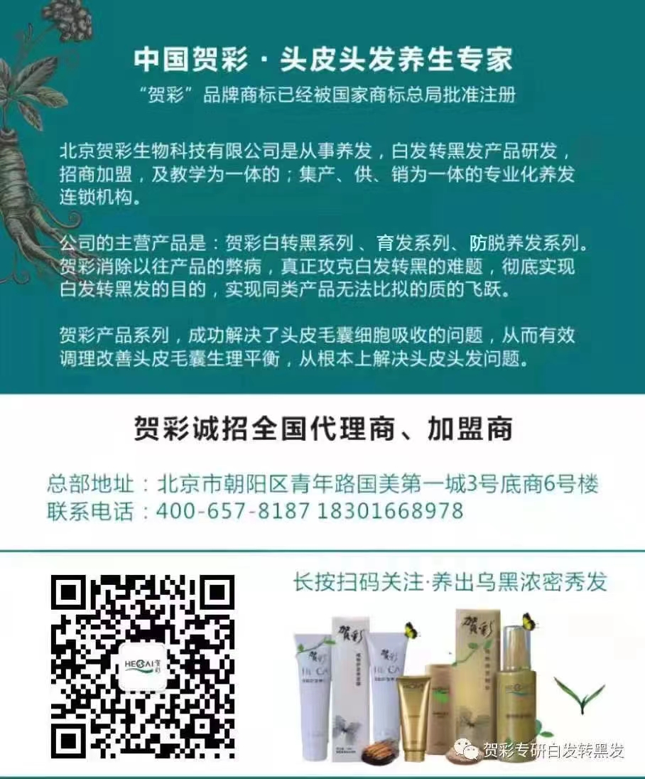 贺彩养脑养发是用40多味中草药提取,精心提炼,用纯植物产品加上按摩手法给头部放松,让珍贵药物渗入头皮,起到排毒,疏通头部经络,改善头皮疼痛等问题。